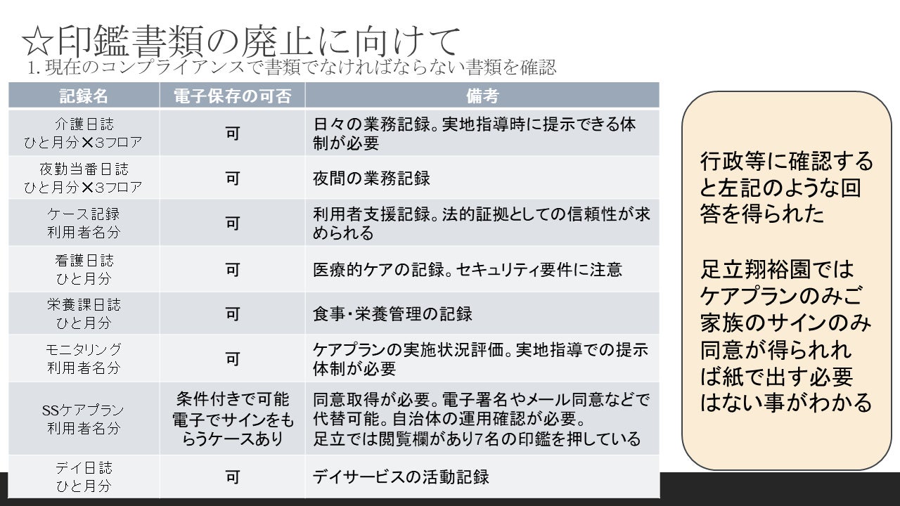 印鑑・議事録・ケアプランを中心とした改善方針