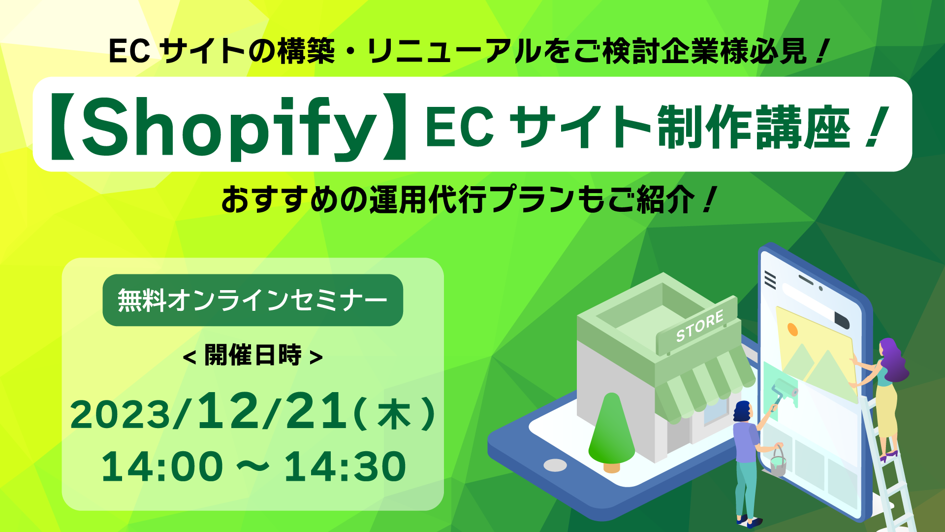 ウェブセミナー「【Shopify】ECサイト制作講座!ECサイトの構築・リニューアルをご検討企業様必見!おすすめの運用代行プランもご紹介!」を2023年12月21日に開催!