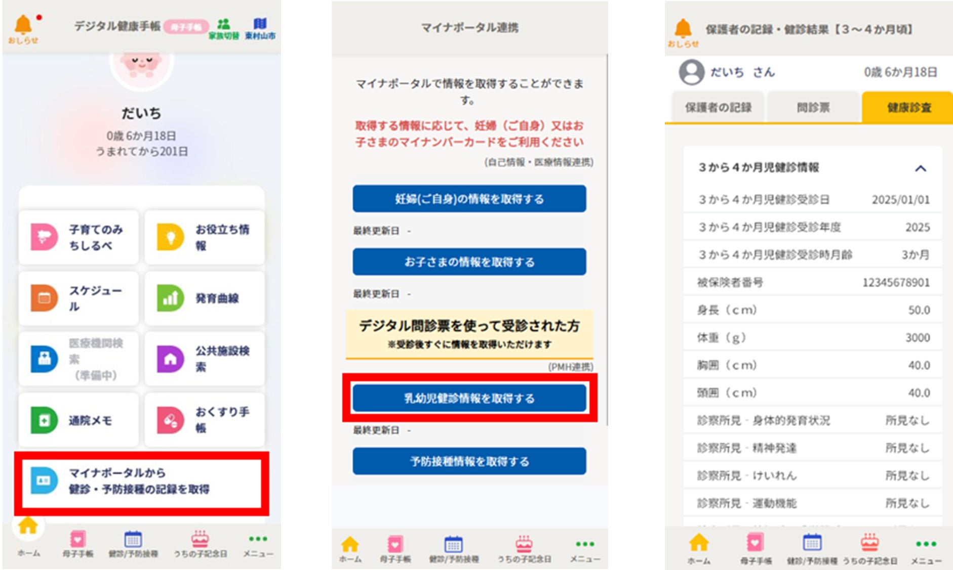 紙の母子健康手帳は、これまでどおり東村山市役所から交付を受けていただくとともに、健診や予防接種等の際には、紙の母子健康手帳をお持ちください。