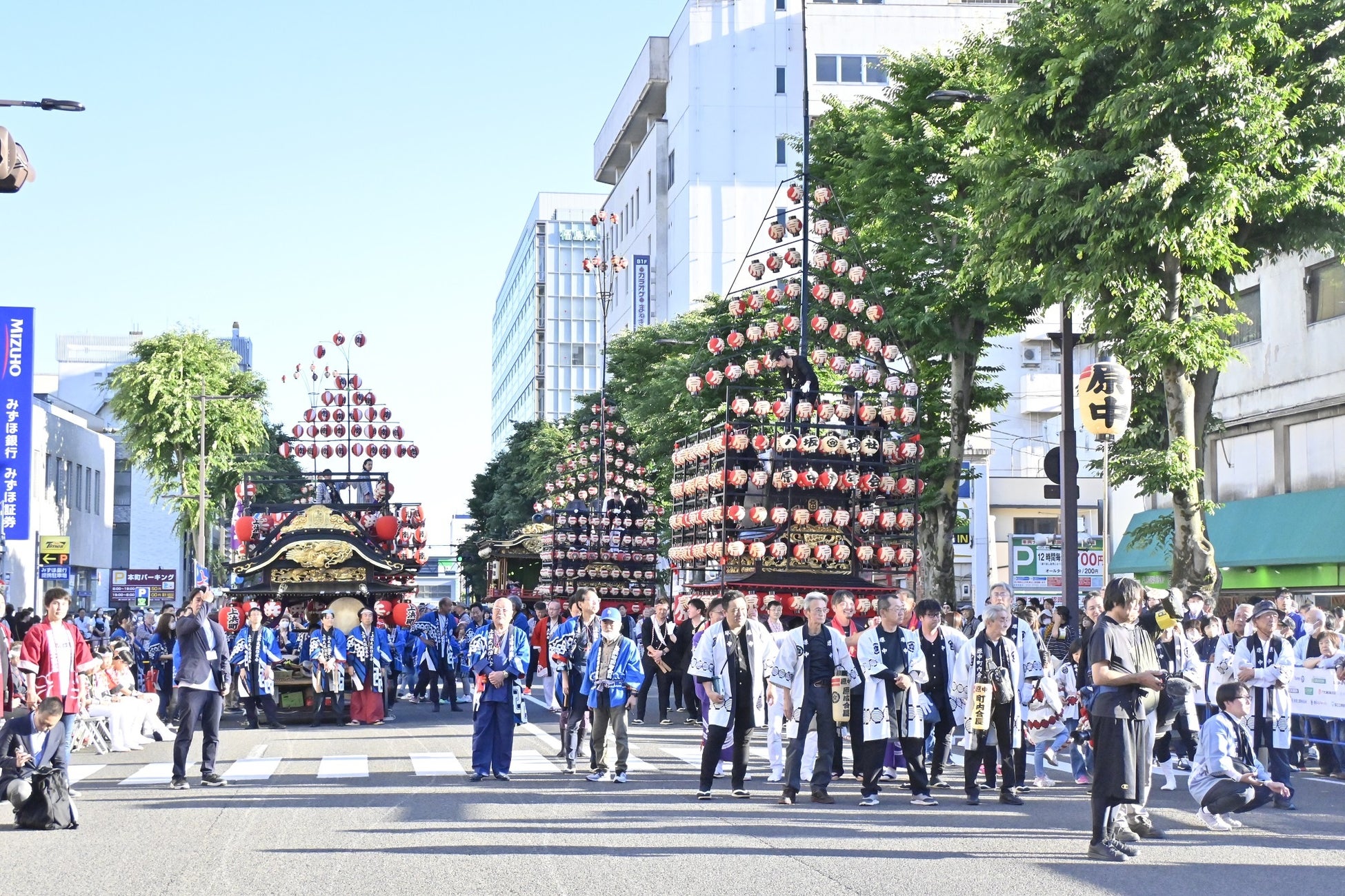 今年は福島市、伊達市、二本松市から計15台の山車が参加し、笛や太鼓のお囃子に乗せて福島市内を練り歩きました。また、能登半島地震で被災した石川県輪島市の和太鼓団体「輪島・和太鼓 虎之介」が特別出演し、演奏を通じて復興へ力強く歩む決意を表現していました。