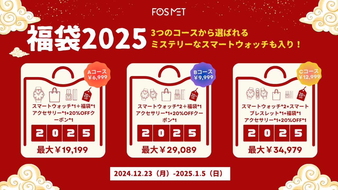 【福袋】FOSMET2025福袋、新年限定の福袋3種とミステリーなスマートウォッチがあなたを待っています!今までのないお買い得、年末年始に見逃せない!