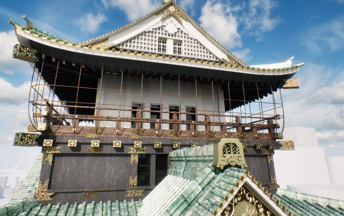 金鯱や算木積の石垣など、大阪城を細部にわたり精巧に再現したマップを使った競技。城内を探索しながら設置されているコインを集めて走り抜けます。