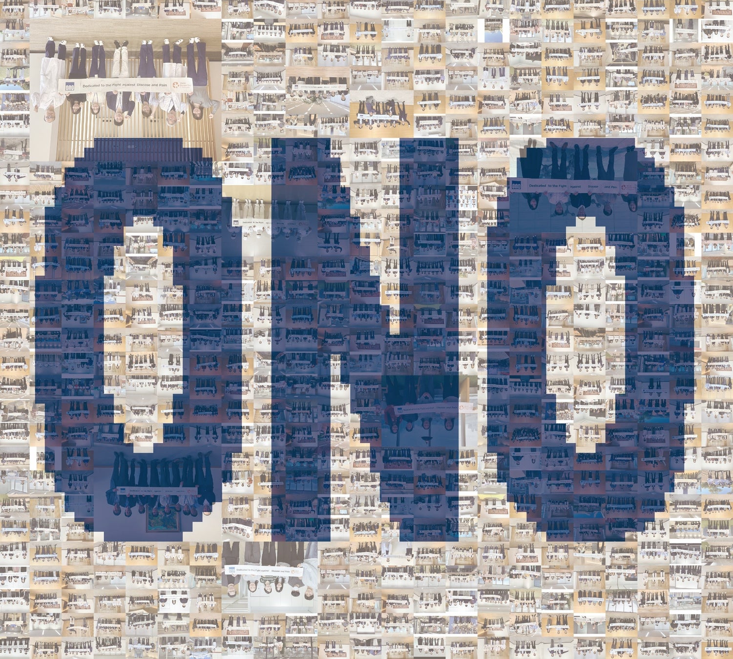 小野グループの国内外の社員がこの取り組みに賛同し、がん患者さんに寄り添う気持ちを一つにしてチーム写真を撮影し、モザイクアートを制作しました。