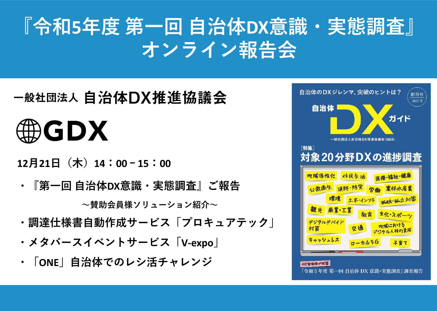 2023年12月21日(木)開催 【令和5年度 第一回 自治体DX意識・実態調査】報告会 配信URL&タイムテーブルのご案内 / 申し込み受け付けは21日12時まで