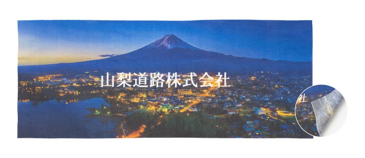 ワンデイ手ぬぐいは、なめらかな風合いに加えて、細い糸で繊細に織られていることから、発色が美しく、グラデーションや風景、人物写真などのデザイン表現にすぐれています。また、全面プリント対応のため、幅広いデザイン表現が可能です。通気性もよく、水分を吸い込んでもすぐに乾く岡生地のため、清潔にお使いいただけるのも特徴です。