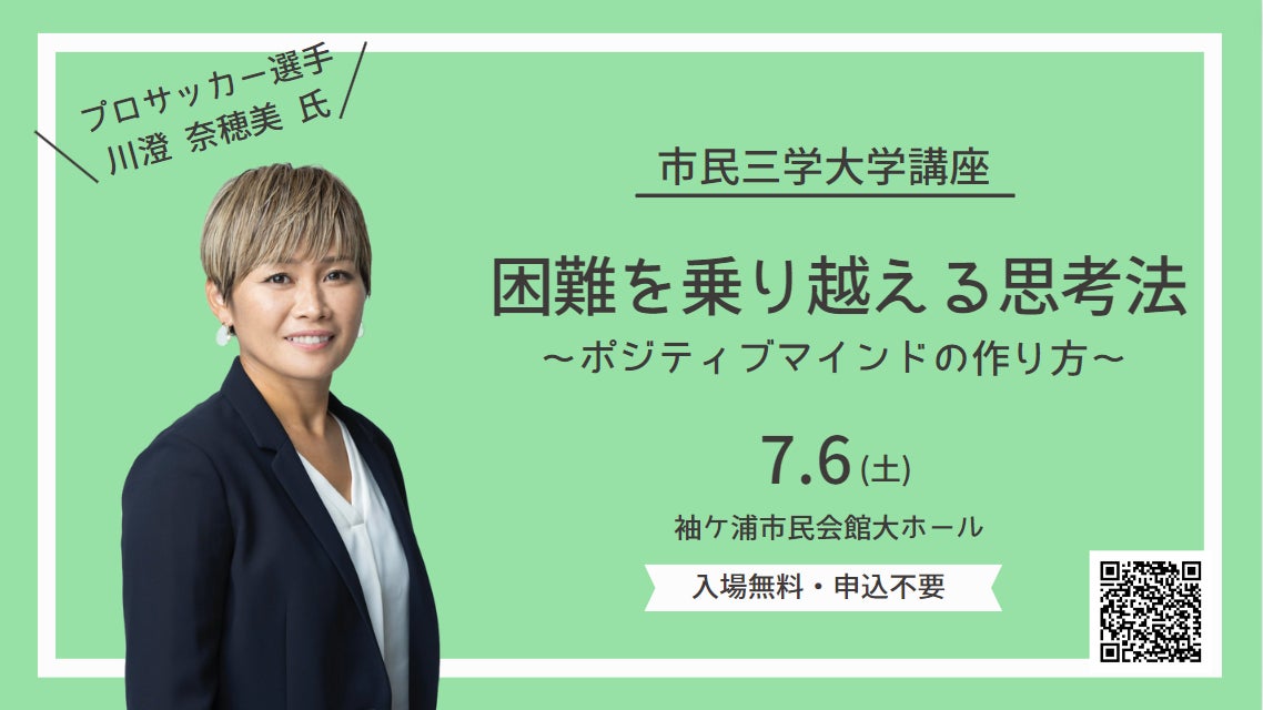 【千葉/袖ケ浦】プロサッカー選手 川澄 奈穂美 氏による「困難を乗り越える思考法~ポジティブマインドの作り方~」講座を7月6日(土)に開催します!