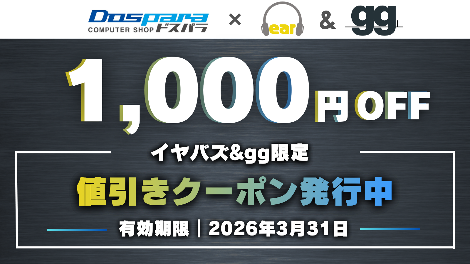 イヤバズではこれまでも期間限定のドスパラクーポンを複数回提供しており、前回の500円OFFに続く最新施策として、今回は値引き額を1,000円に増額して提供いたします。