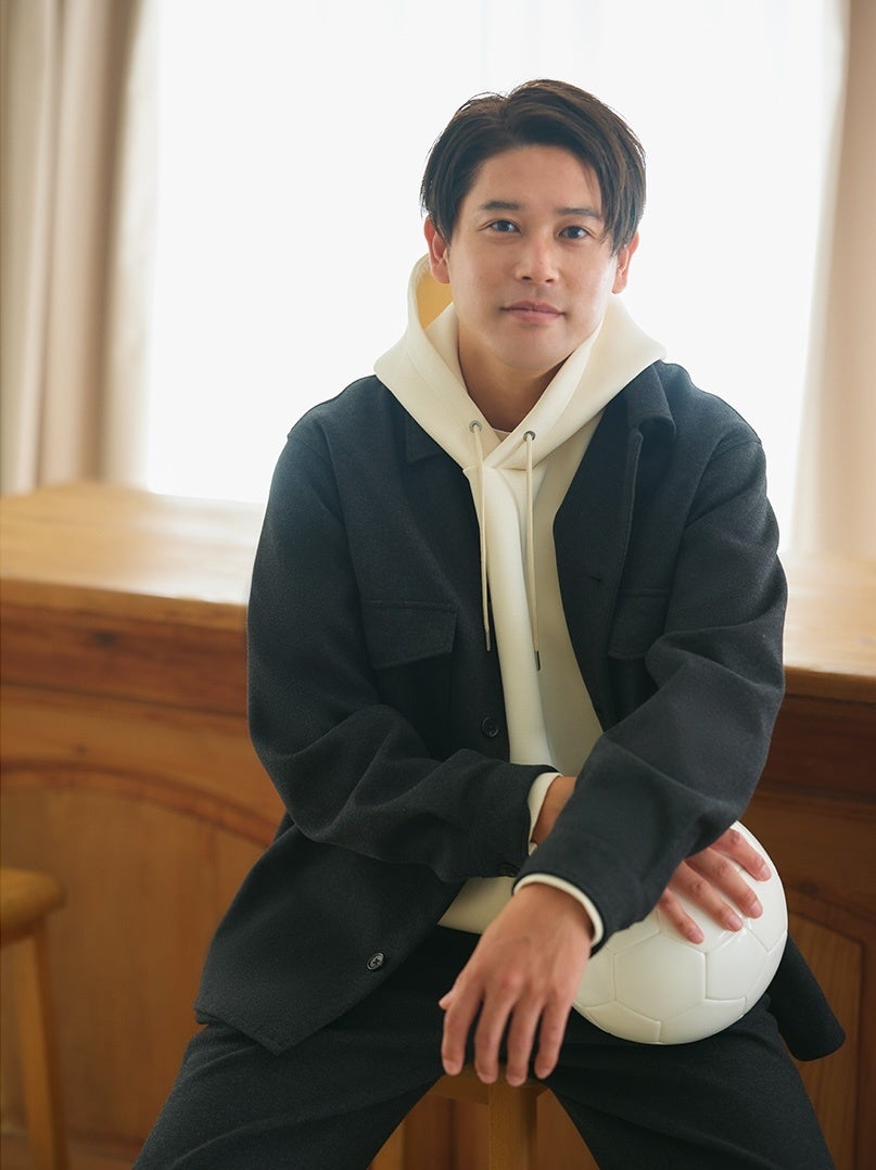 オフの日の服装選びで気にかけているポイントについてお伺いすると、『実は現役時代はサッカー一筋で、服についての知識はそれほどないんです。なんなら家族と一緒に買い物に行って、子供に服を選んでもらうほど』とお子様に洋服を選んでもらっていることを告白。『それでも引退後に家族と出かける時間が増えてからは、自分でも“見られ方”を少し気にするようになりました。パパとして変な格好はできないぞと』と父親目線での洋服選びのエピソードをお話しいただきました。