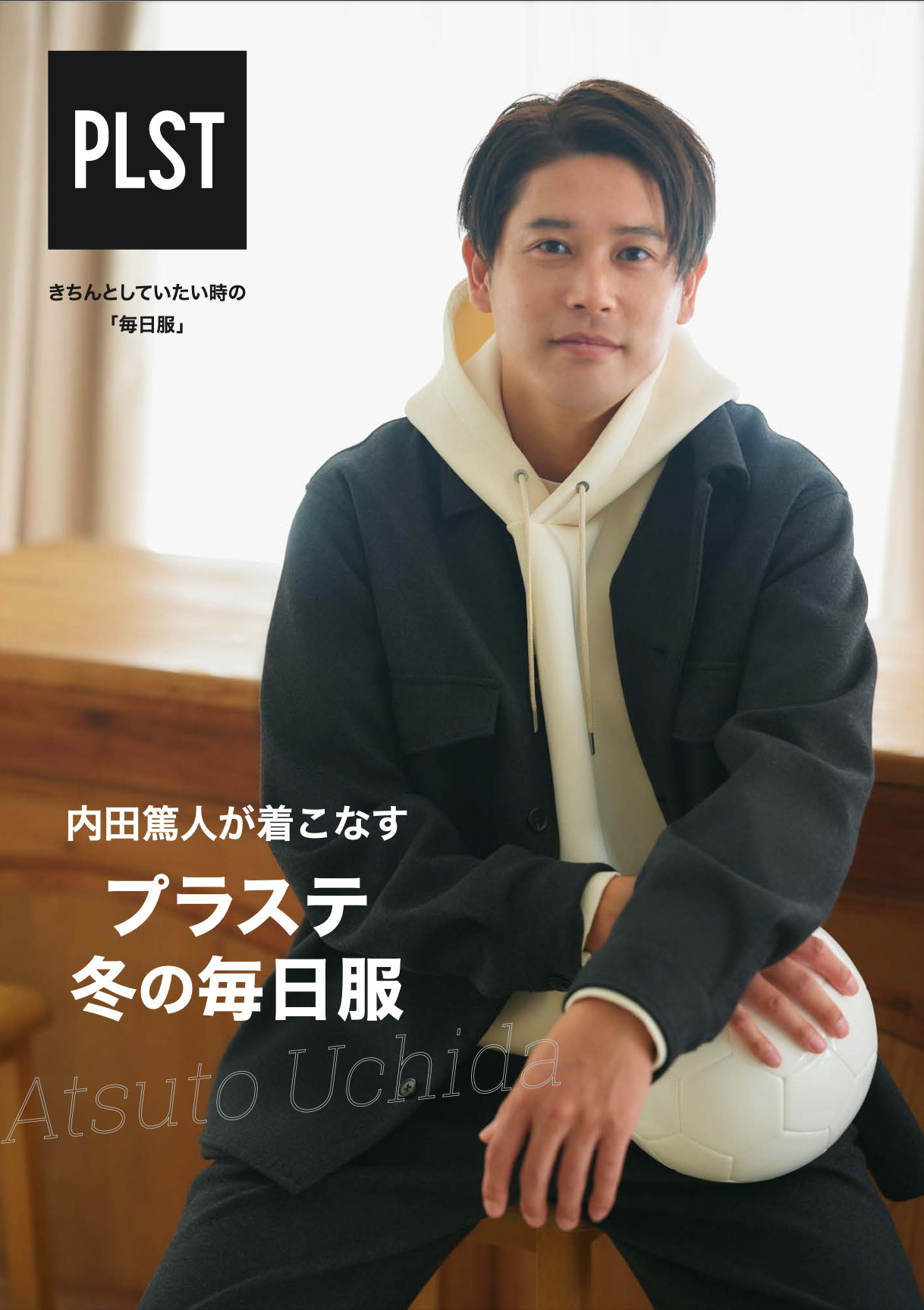特集ページの公開に合わせて店舗では、メンズ向けの秋冬アイテムを内田さんの着こなしと共にご紹介するリーフレット「内田篤人が着こなす プラステ冬の毎日服」を配布開始いたします。