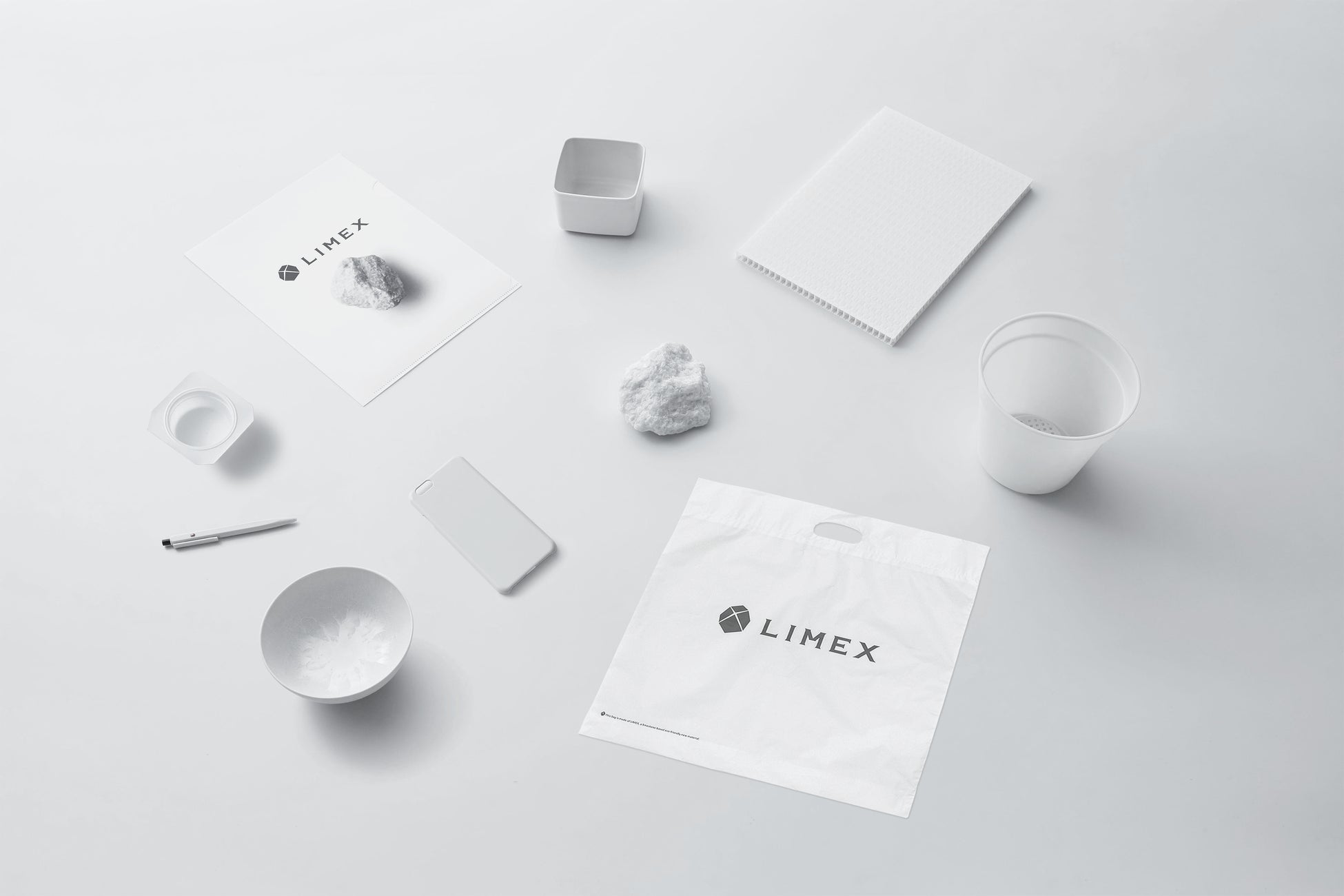 炭酸カルシウムなどの無機物を50%以上含む、無機フィラー分散系の複合素材。 主原料の石灰石は日本でも豊富に採取することができるため、国内での自給自足が可能です。