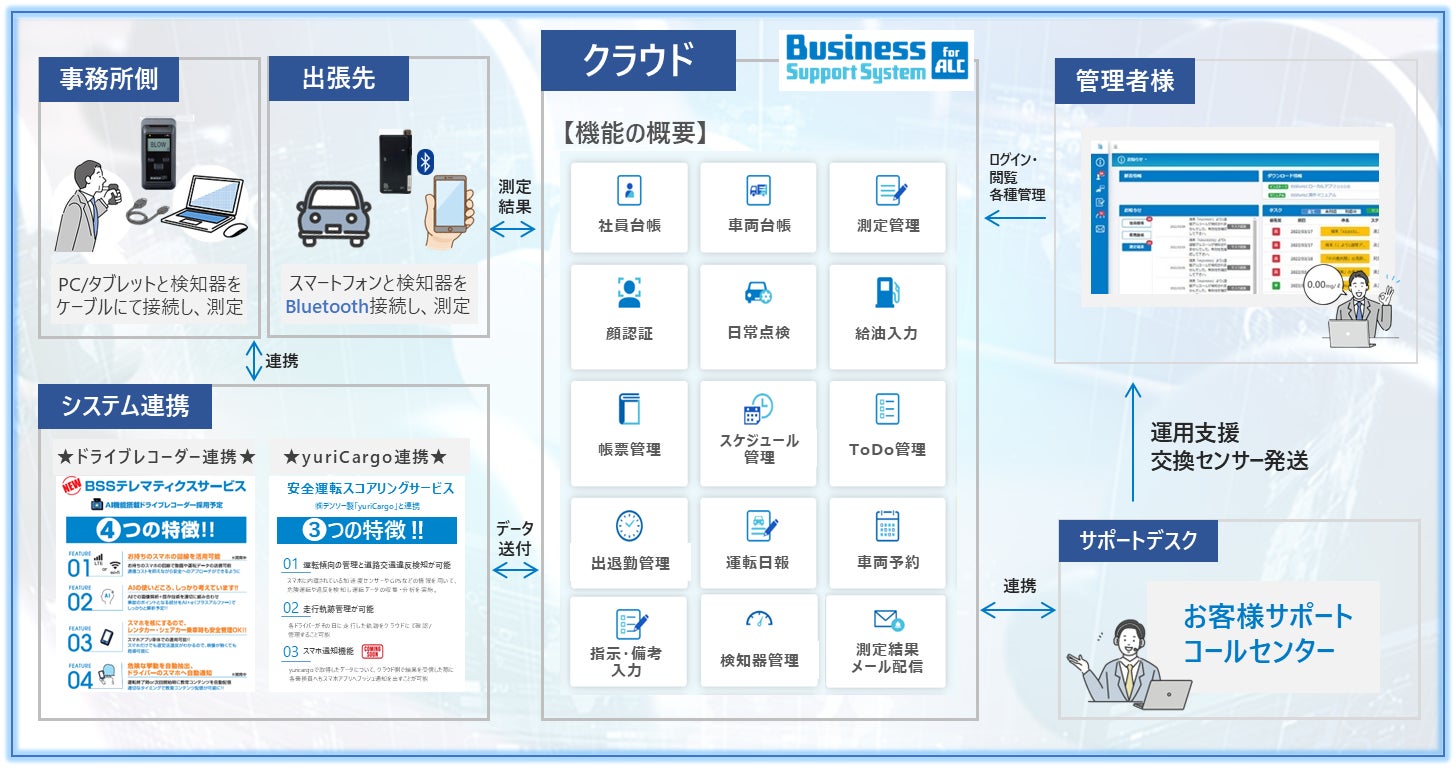BSSforALCを利用いただくことで、アルコール測定の義務化対応だけでなく、