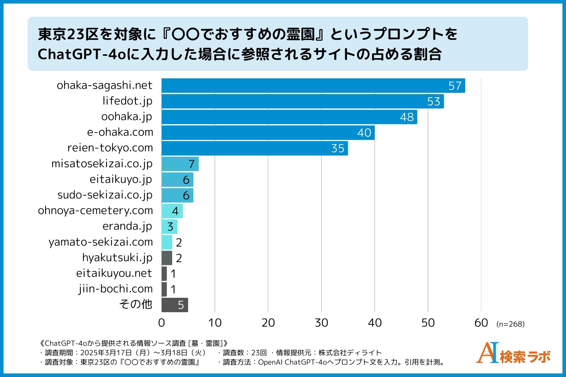 1-2 東京23区を対象に『〇〇でおすすめの霊園』というプロンプトをChatGPT-4oに入力した場合に参照されるサイトの占める割合