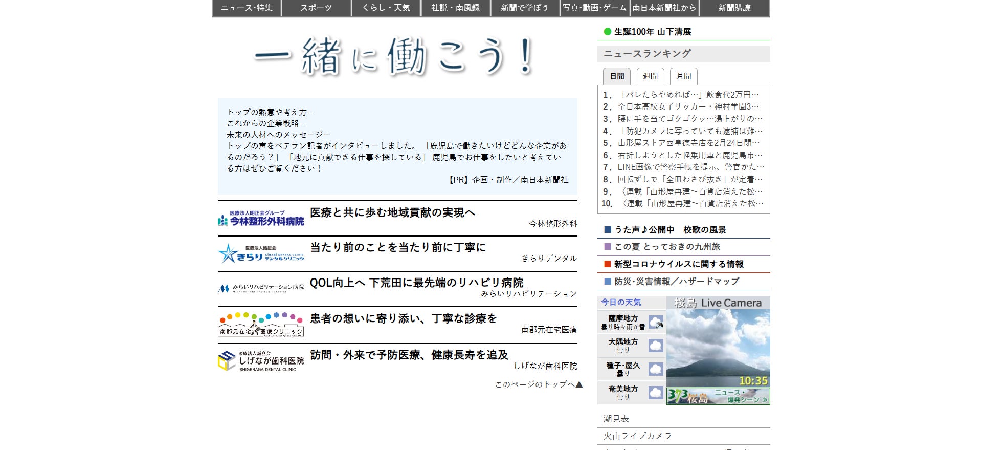 南日本新聞社(鹿児島県鹿児島市)は1月、公式ホームページで、県内企業の魅力を伝え、就職活動に役立ててもらう広告企画「一緒に働こう!」の掲載を始めました。