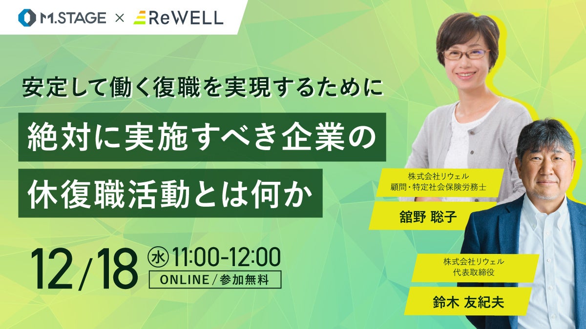 《人事労務担当者様必見》【メンタルヘルス不調休職者“年2%時代”に対応する、安定して働く復職を実現するために絶対に実施すべき企業の休復職活動とは何か】12/18(水)11時~ウェビナー開催