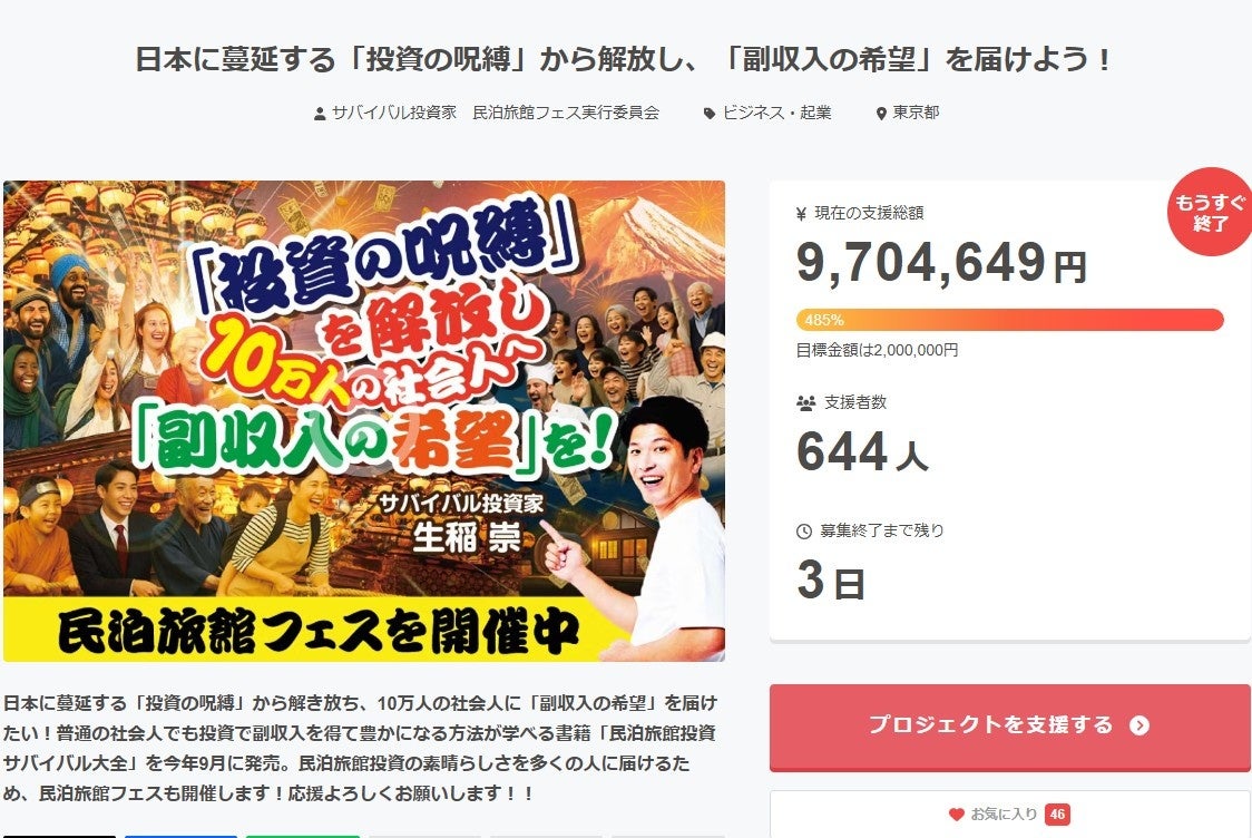 民泊旅館投資の“現在”と“未来”を照らす「民泊旅館フェス2025」のクラウドファンディングが970万円を突破!