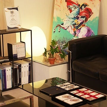 サロン内はコインのみならず、アートなどコレクションを展示した非日常なデザイン。スタイリッシュなモダン&建物の古材を生かしたリラックスできる空間となっており、プライバシーが守られたカフェやラウンジのような感覚で気軽にご相談いただけます。