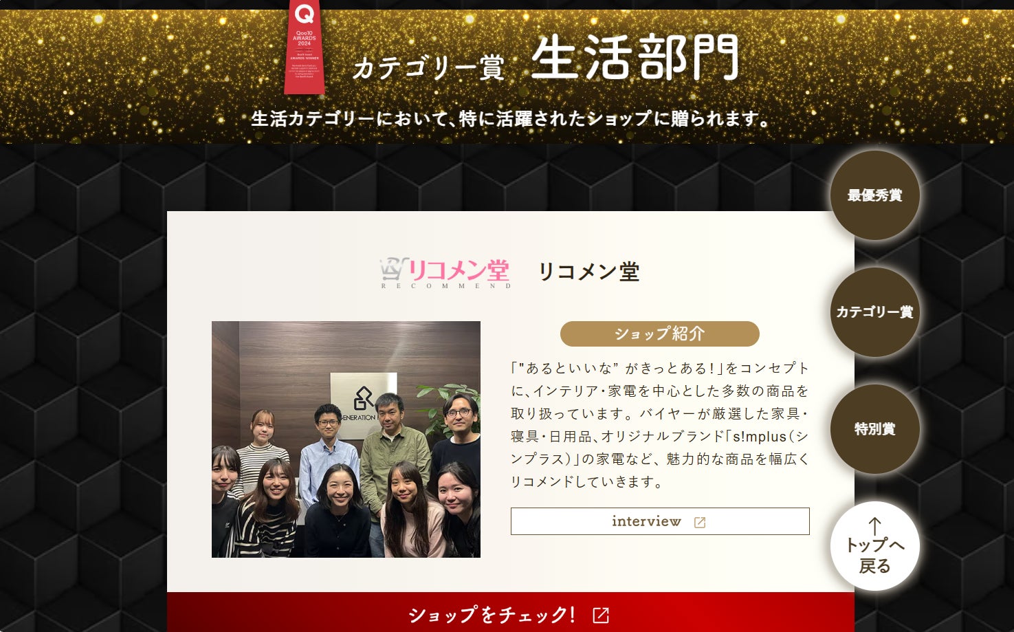 2024年度「Qoo10 AWARDS 2024」カテゴリー賞 生活部門