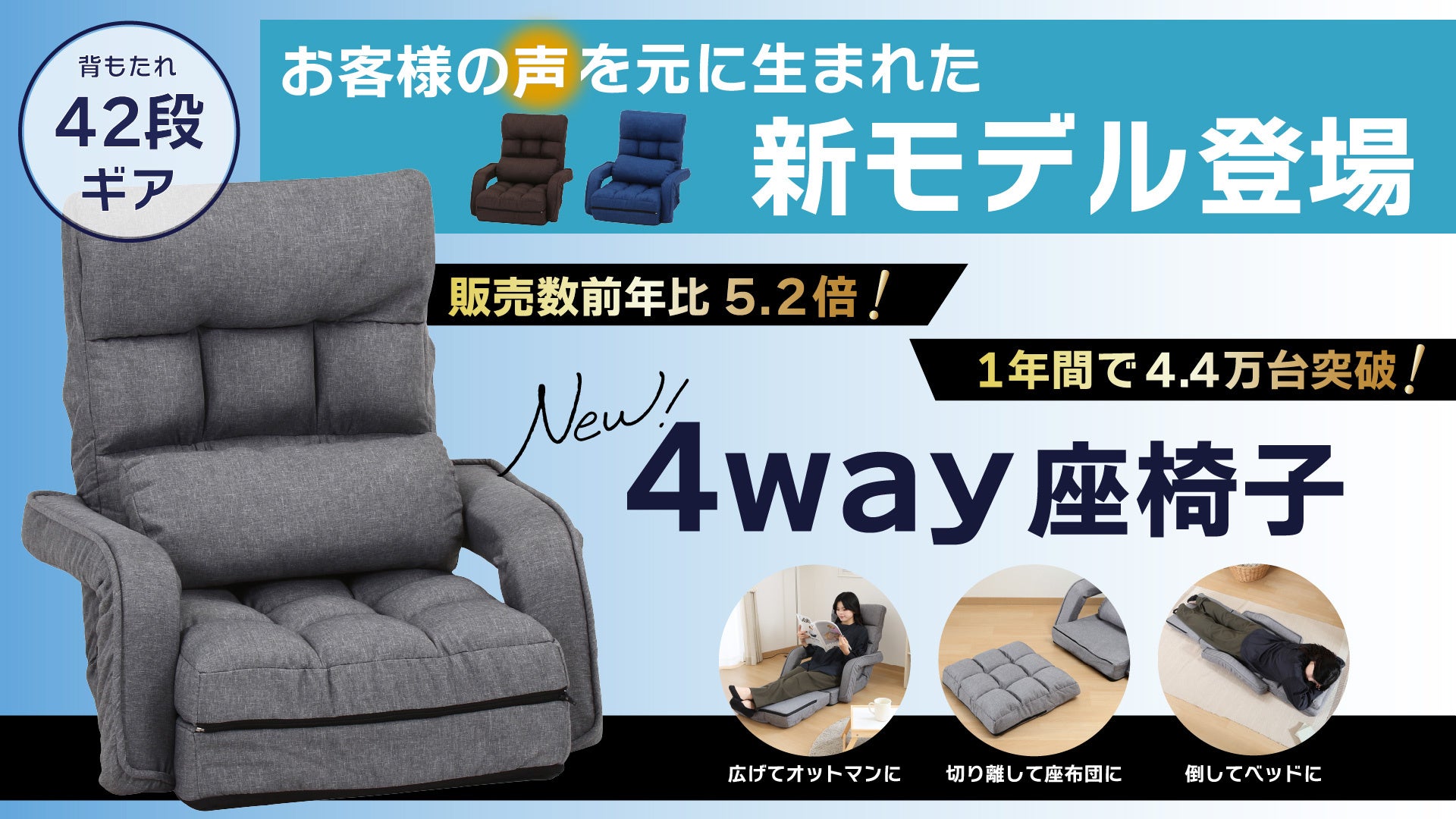 前年比5.2倍!1年間で4.4万台を売り上げた「4WAY座椅子」 爆発的人気の秘密とお客様の声を反映させた新モデルを発売!