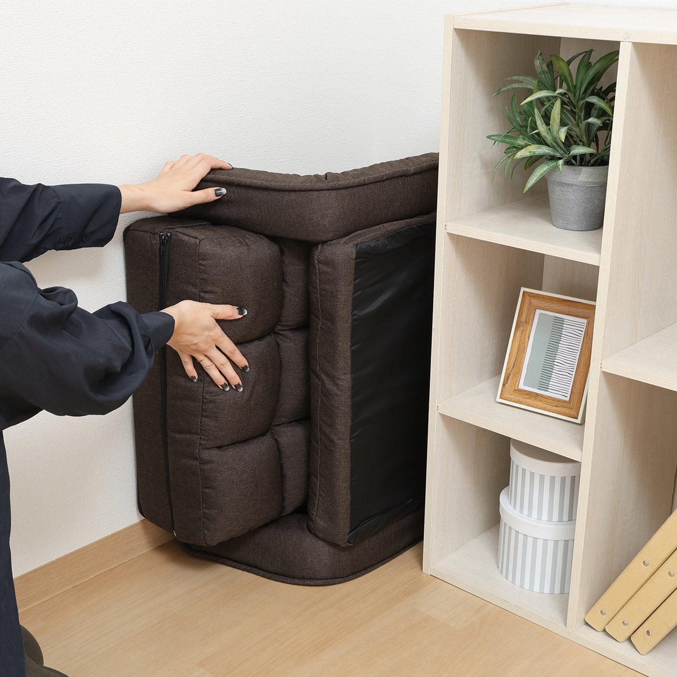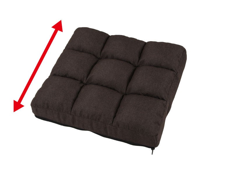 肉厚クッションが特徴の座椅子ですが、さらに全体のボリュームをアップさせ、見た目も座り心地もさらにふっくらとパワーアップしました。クッション一つ一つがきゅっと引き締まった形なので、ボリュームはありながらもスッキリとした印象です。