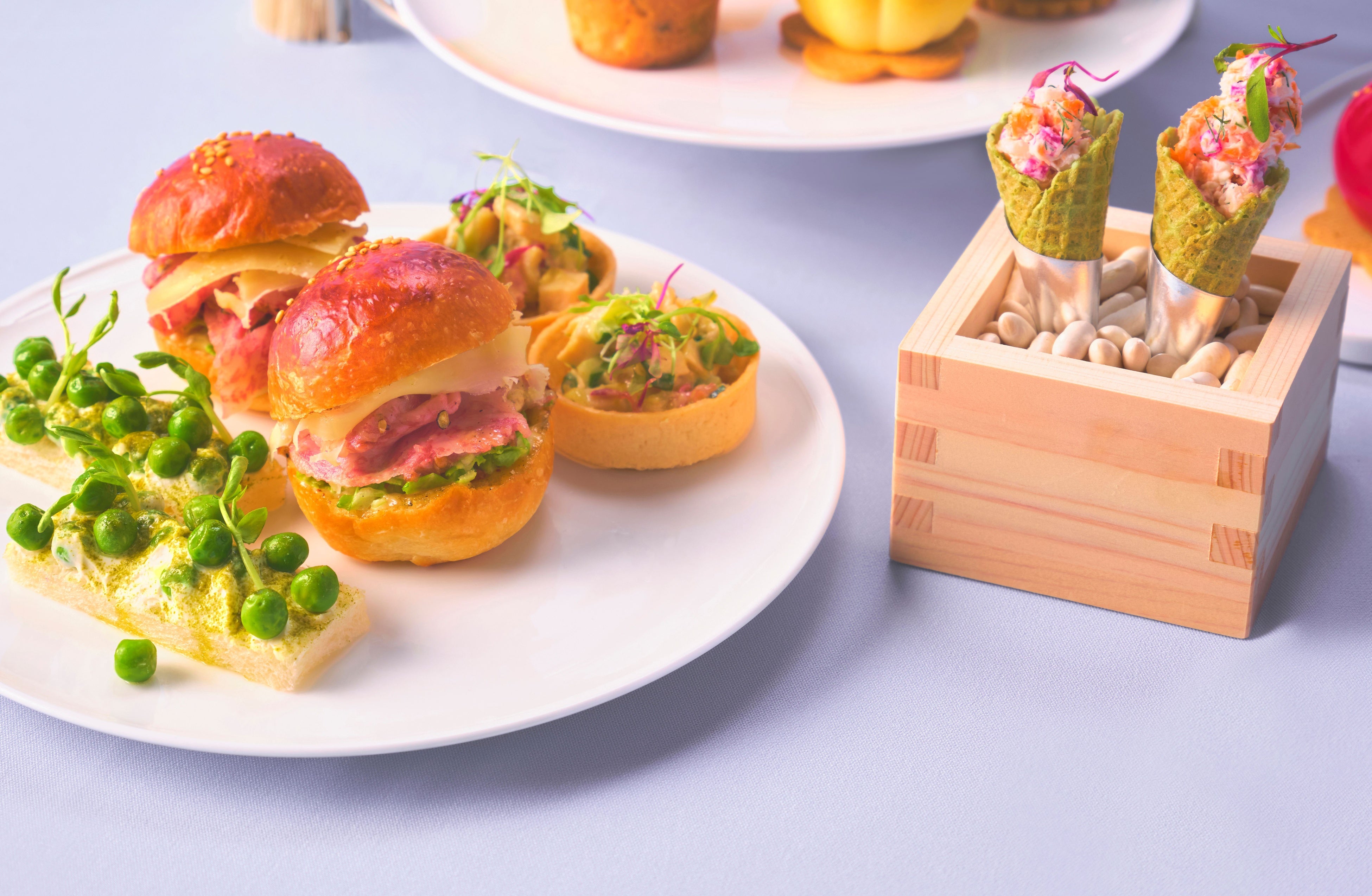 柔らかな春の空気に、初夏の気配が重なりはじめるこの時期。色鮮やかに実るフルーツの軽やかな酸味と透明感ある甘みを主役に、この季節ならではの“生命感あふれる美味しさ”をお届けします。桜香る「アマレナチェリーパウンドケーキ 桜クリーム」、メロンのみずみずしさとホワイトチョコレートの ハーモニーを味わう「メロンとホワイトチョコレートタルト」など、ペストリーシェフによるスイーツは全9種類。フレッシュブルーベリー、アプリコット、マンゴーなど、春の余韻と初夏の息吹を感じるフルーツを贅沢に用い、ムース、タルト、フルーツカルパッチョなど多彩な味わいでご用意しました。セイボリーには「和牛パストラミ・ミニバーガー」をはじめ、ブーケのような「スモーク鱒のリエット入りミニコーン」など見た目にも春を感じる全4種類もラインアップ。京都「小川珈琲」のヒルトン京都オリジナルブレンド、和紅茶など厳選のティーセレクションとともにご賞味ください。さらに、ご自宅でお楽しみいただける「アフタヌーンティー テイクアウトボックス」も登場。2名様分のスイーツを美しいギフトボックスに詰め、お花見やピクニック、ギフトとしても最適な一品です。