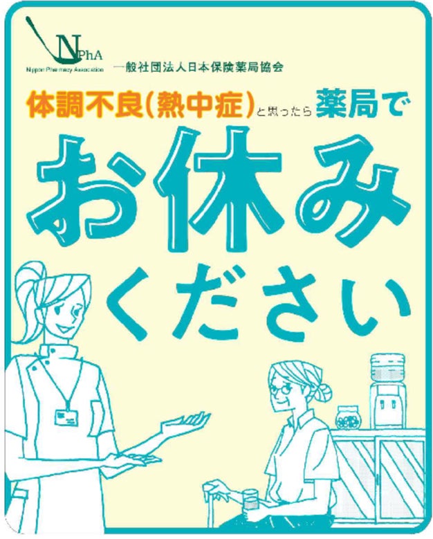 本活動は、「体調不良(熱中症)と思ったら、薬局でお休みください」をキャッチフレーズに、一般社団法人日本保険薬局協会(NPhA)が同会の正会員企業と協力し、実施する熱中症予防の啓発活動です。