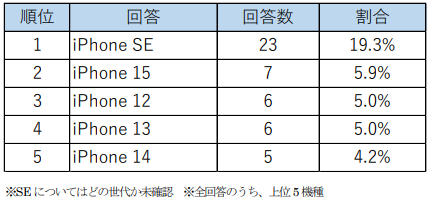 ・iPhoneを使用している場合、どの機種を使用していますか?(自由記述回答)