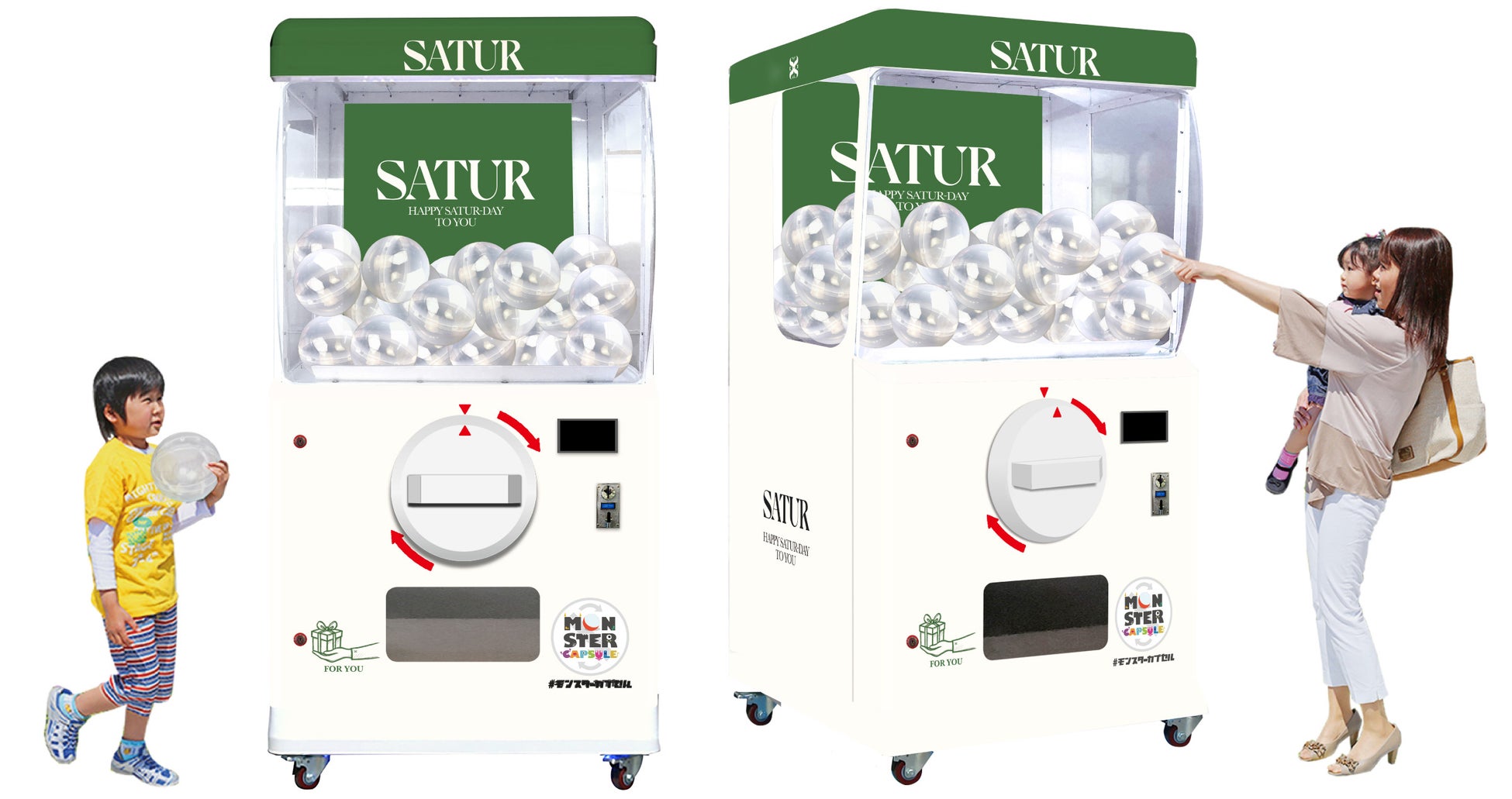 巨大ガチャ「モンスターカプセル」の企画・運営を行う株式会社グリーグローブ(本社:東京都文京区/代表取締役:上村 正治)は、複数のストリートブランドを展開する株式会社yutori(本社:東京都世田谷区/代表取締役社長:片石 貴展/東証グロース市場〈証券コード:5892〉)が2025年10月4日(土)にオープンする韓国発の人気ブランドSATUR(セター)原宿旗艦店において、高さ2.0mの巨大ガチャ「モンスターカプセル」を提供します。オープン当日を含む3日間(10/4~10/6)、購入者向けノベルティ施策やInstagram連動企画と組み合わせ、店頭で“回すワクワク”体験を創出します。