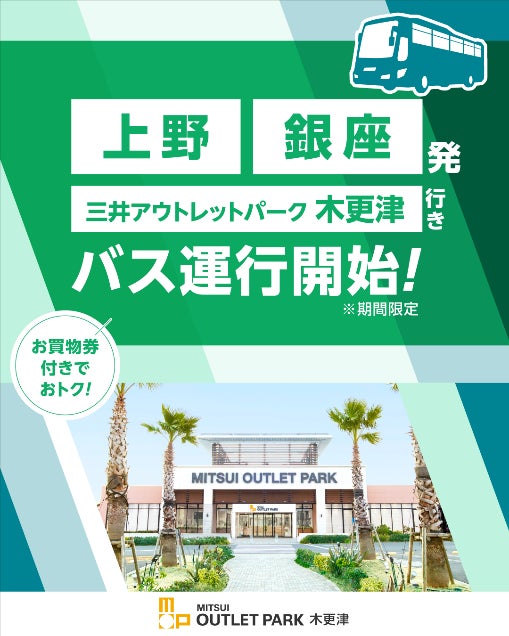 また、2025年4月より期間限定でJR上野駅(公園口ロータリー前)、銀座(GINZA SIX)からも三井アウトレットパーク木更津 への直行バスを予約制で運行しております。
