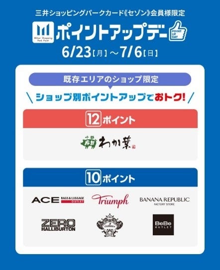 三井ショッピングパークカード《セゾン》会員様限定で、既存エリアの対象ショップにて、期間中におトクなポイントアップデーを開催!