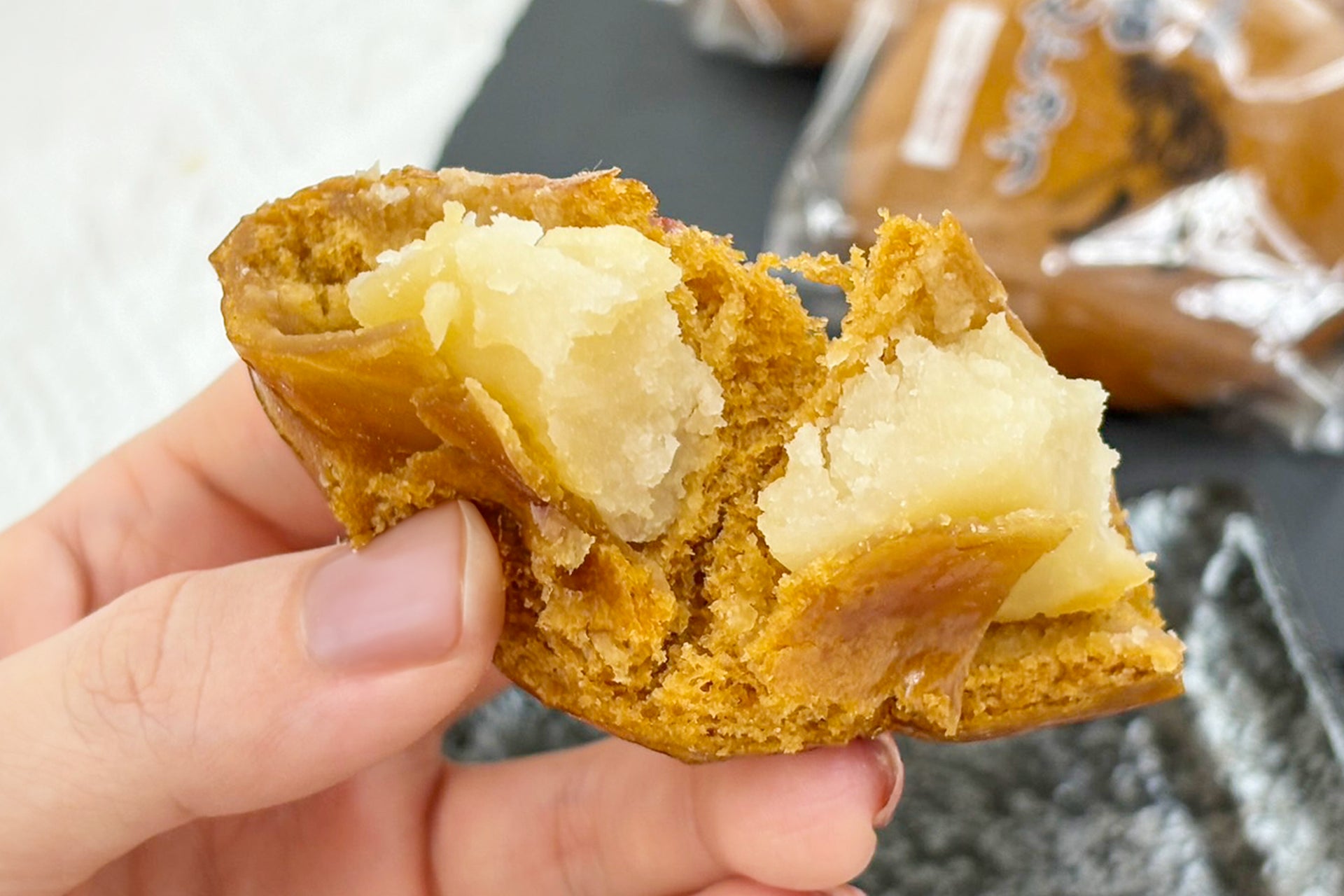ほんのり塩気を感じる生地と合わさることで、白あんのやさしい甘さがふわりと引き立ちます。