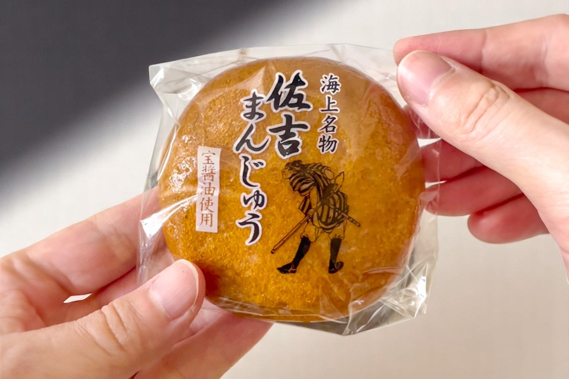 「佐吉まんじゅう」は、ふっくらとした美しいフォルムが特徴の、ちょっと珍しい“醤油風味”の和菓子。老舗・宝醤油の“特選醤油”を使用し、香ばしさと甘さの絶妙なバランスを楽しめます。