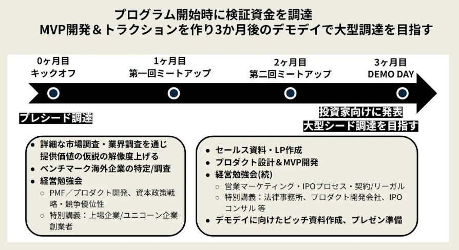 3ヶ月のブートキャンプを経て、150名以上の投資家の前でデモデイを実施し、大型調達を目指そう!
