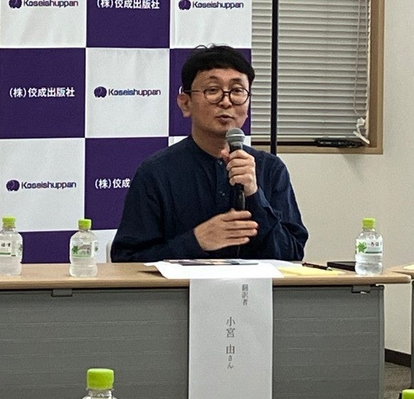 「本文中では、〈トンボ〉と表記されていたのに対して、タイトルは〈蜻蛉〉と書かれている。これには、どういった意図を込められたのですか」という参加者からの質問を受け、小宮さんは、「ふつうの〈トンボ〉と、八雲の〈蜻蛉〉を分けて表現したかった。だから、本書では〈トンボ〉は生物としての表現とし、漢字の〈蜻蛉〉は、小泉八雲の象徴として表しました」と述べ、訳者として、タイトルに込めた意図を話しました。