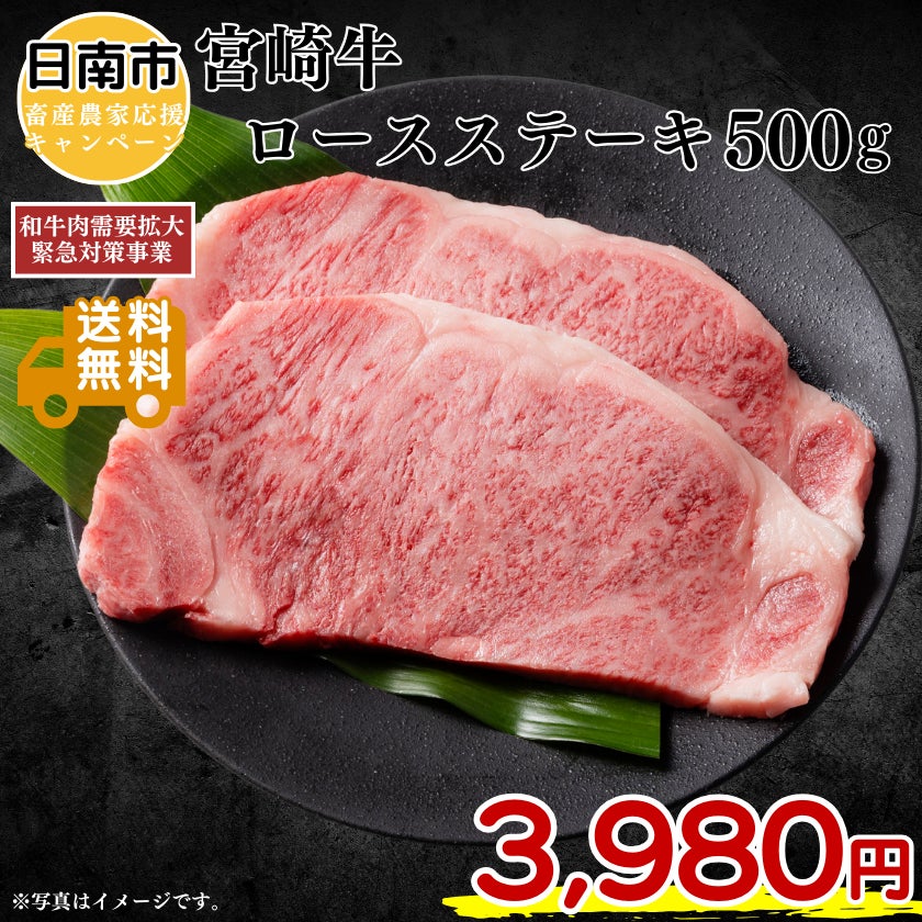 【生産者応援】〈日南市産〉宮崎牛ロースステーキ2枚500g【送料無料】