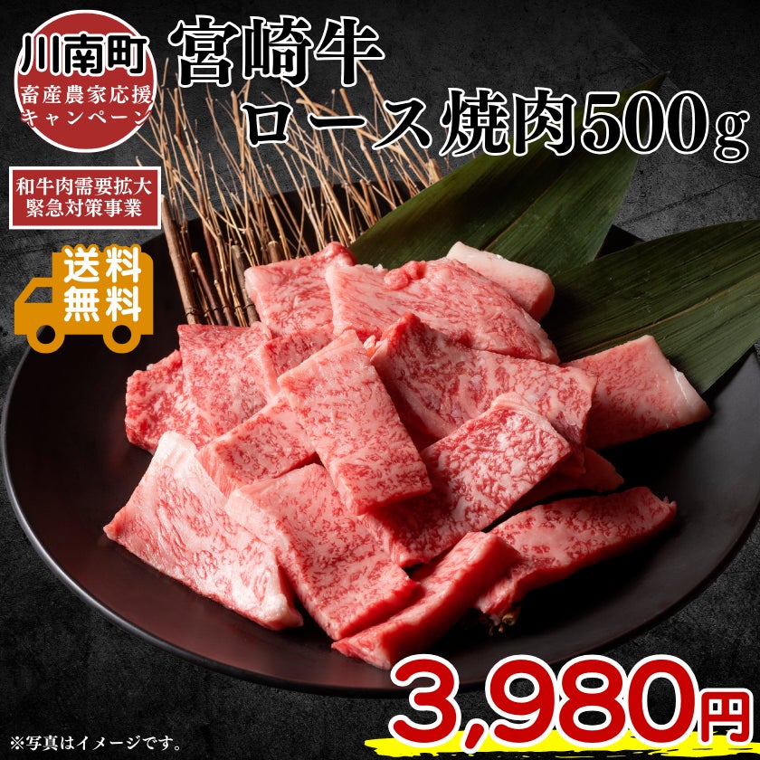 【生産者応援】〈川南町産〉宮崎牛ロース焼肉500g【送料無料】