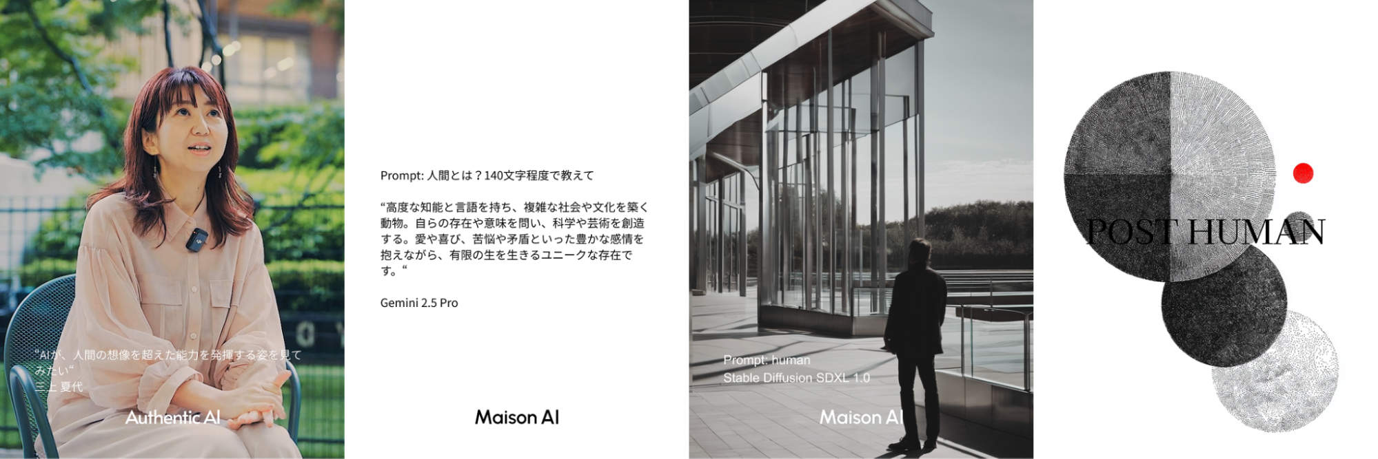 『POST HUMAN』は、自社プロダクト「Maison AI」の枠を超え、生成AI時代の「文化創造」に挑戦するすべての人々と共に未来を探求する、オープンなコミュニティ・メディアブランドです。