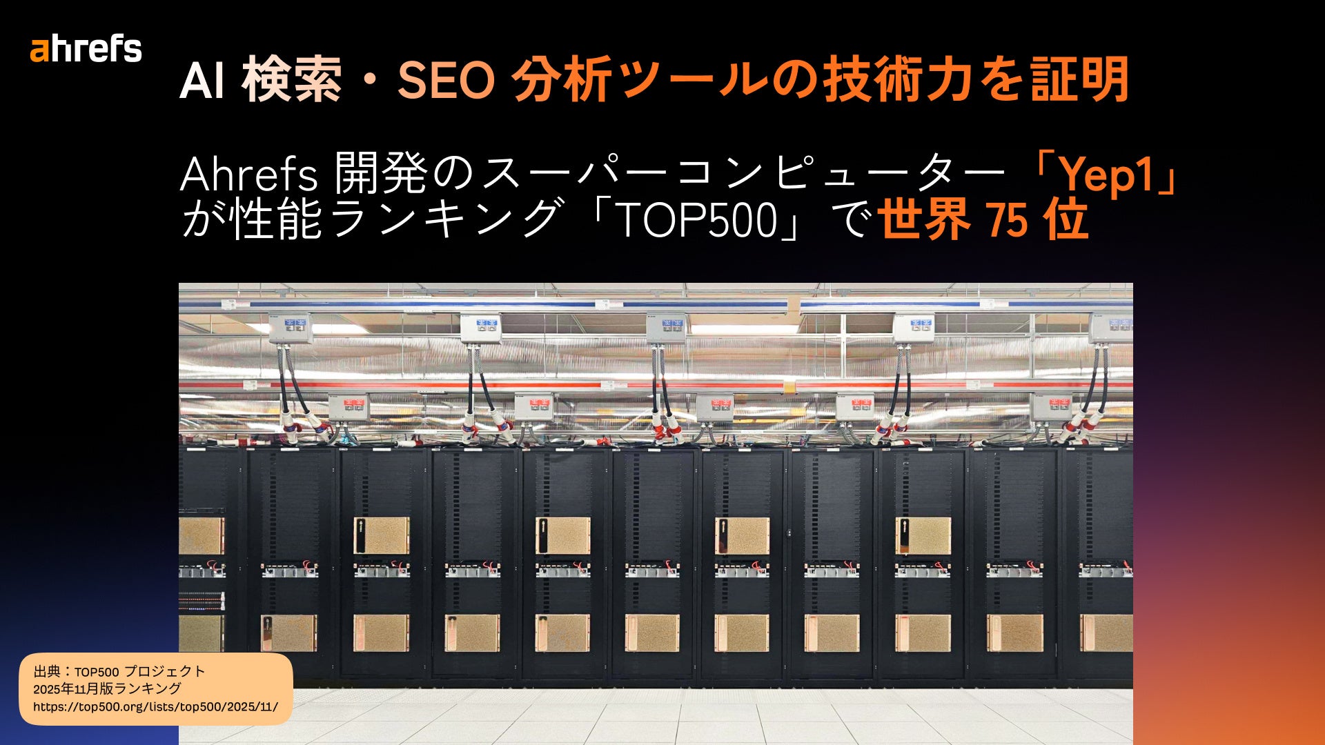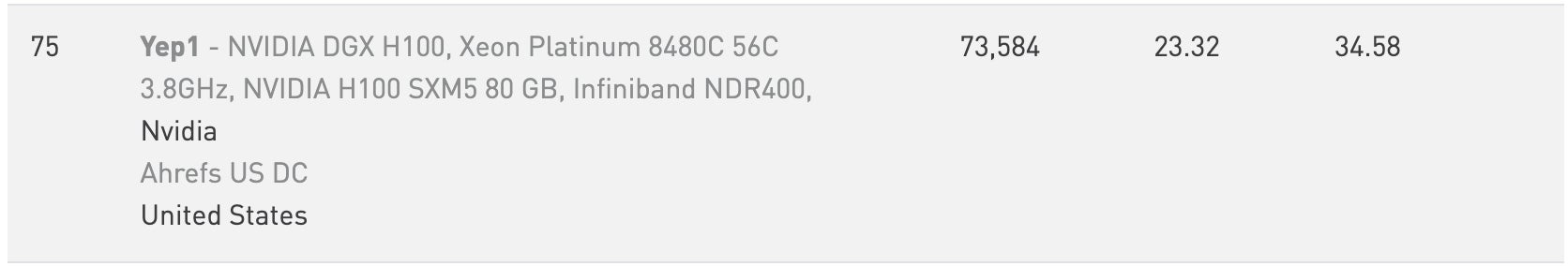 AI 検索分析・SEO ツール大手の Ahrefs エイチレフス開発 - スーパーコンピューター「Yep1」が性能ランキング「TOP500」で世界 75 位を獲得
