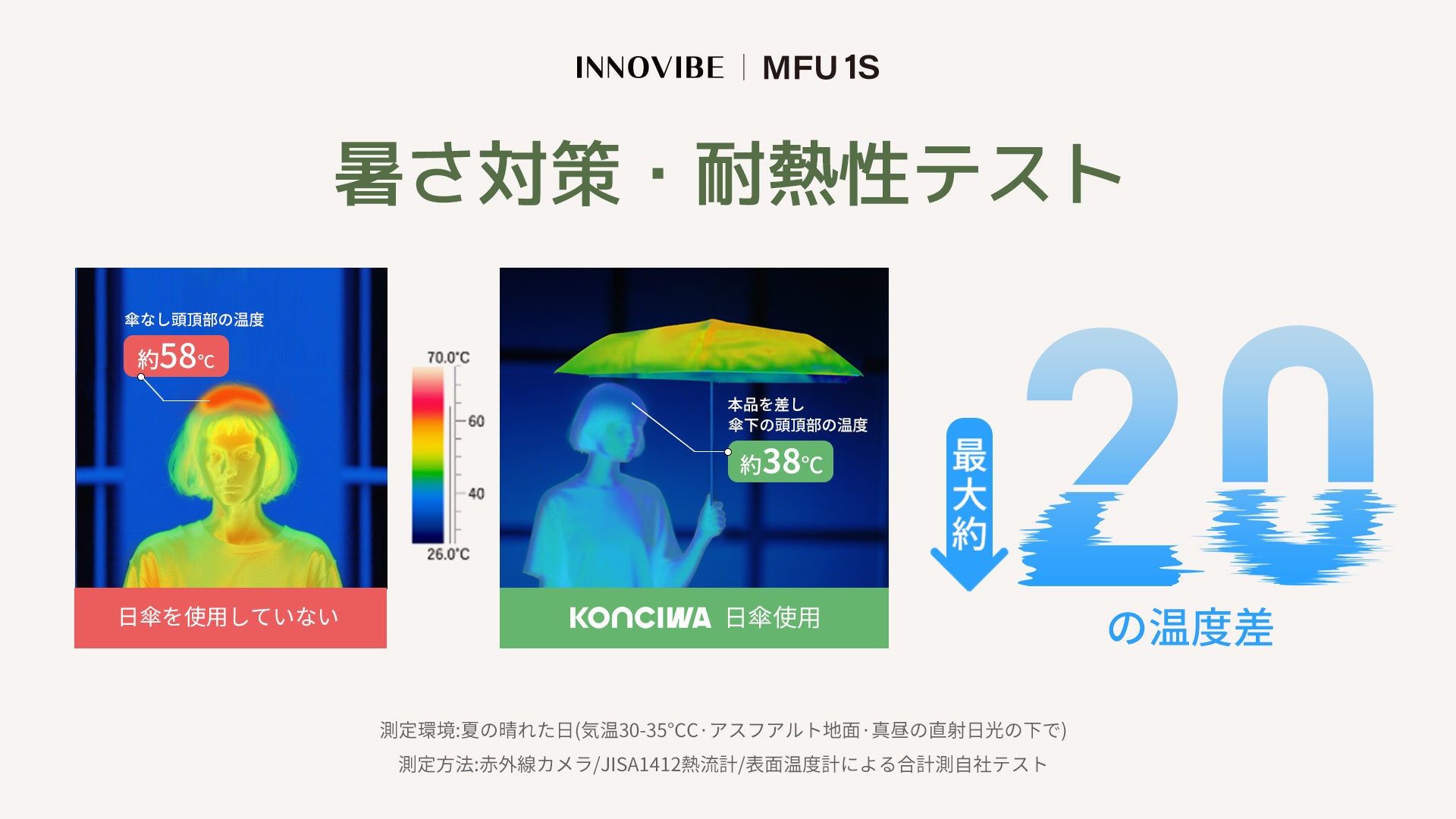 遮熱性能: 直射日光下において最大−20℃の遮熱効果を発揮し、木陰のような涼やかさを提供。