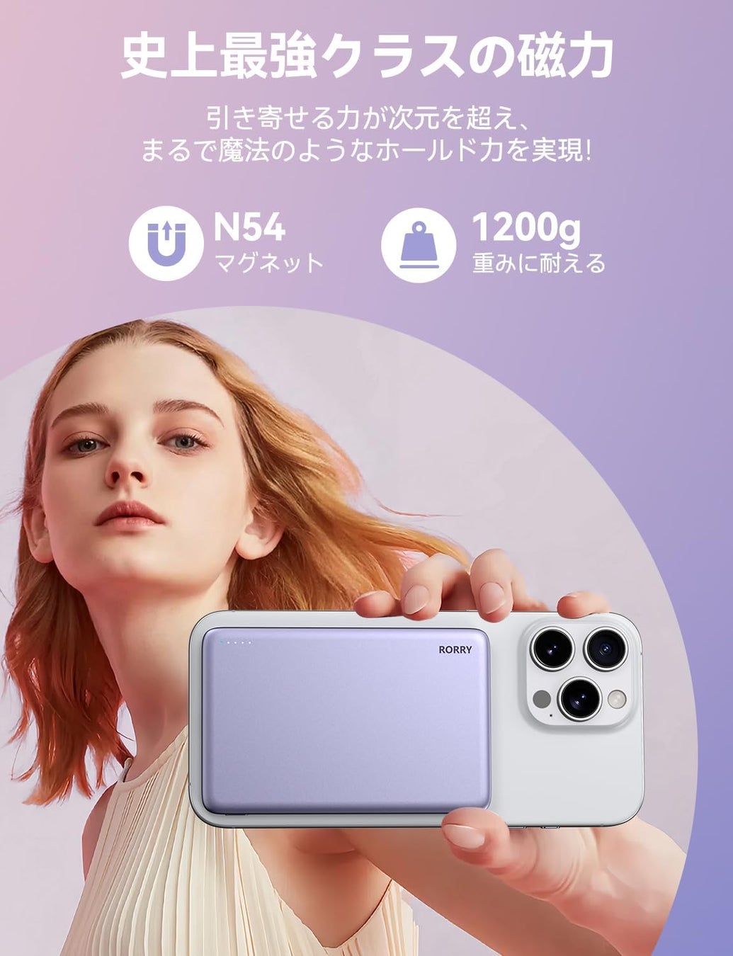 12Nの強力な磁力を持つマグネットを内蔵し、MagSafe対応のiPhoneにしっかり吸着。充電中にズレたり外れたりすることなく、安定したワイヤレス充電が可能です。