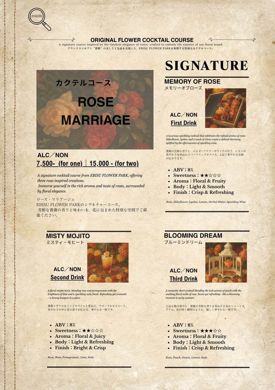 ※コースには3杯のカクテル(アルコール/ノンアルコール)が選べます。