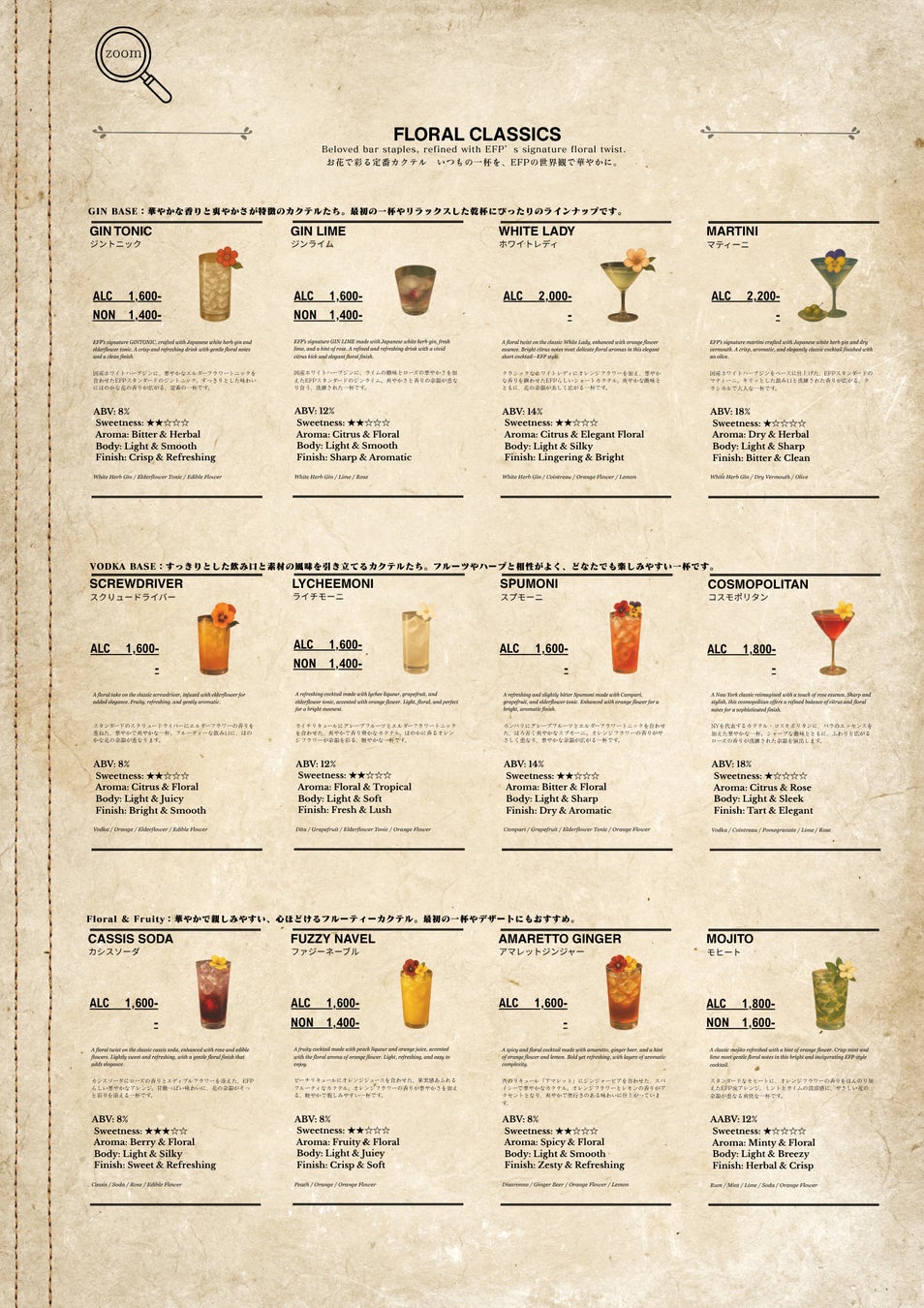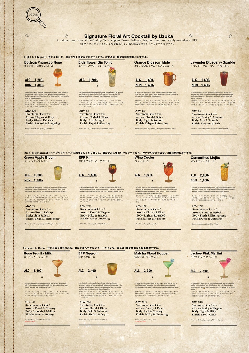 秋の花「ダリア」をモチーフに、色ごとの花言葉をカクテルで表現した、EFPならではのフローラルコースです。