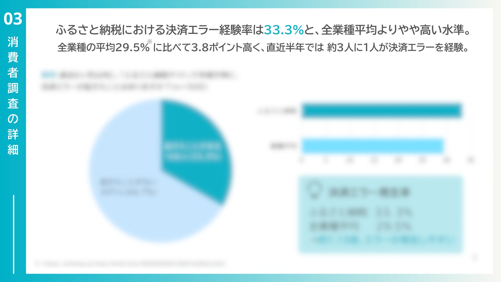 ふるさと納税における決済エラー経験率は33.3%と、全業種平均よりやや高い水準
