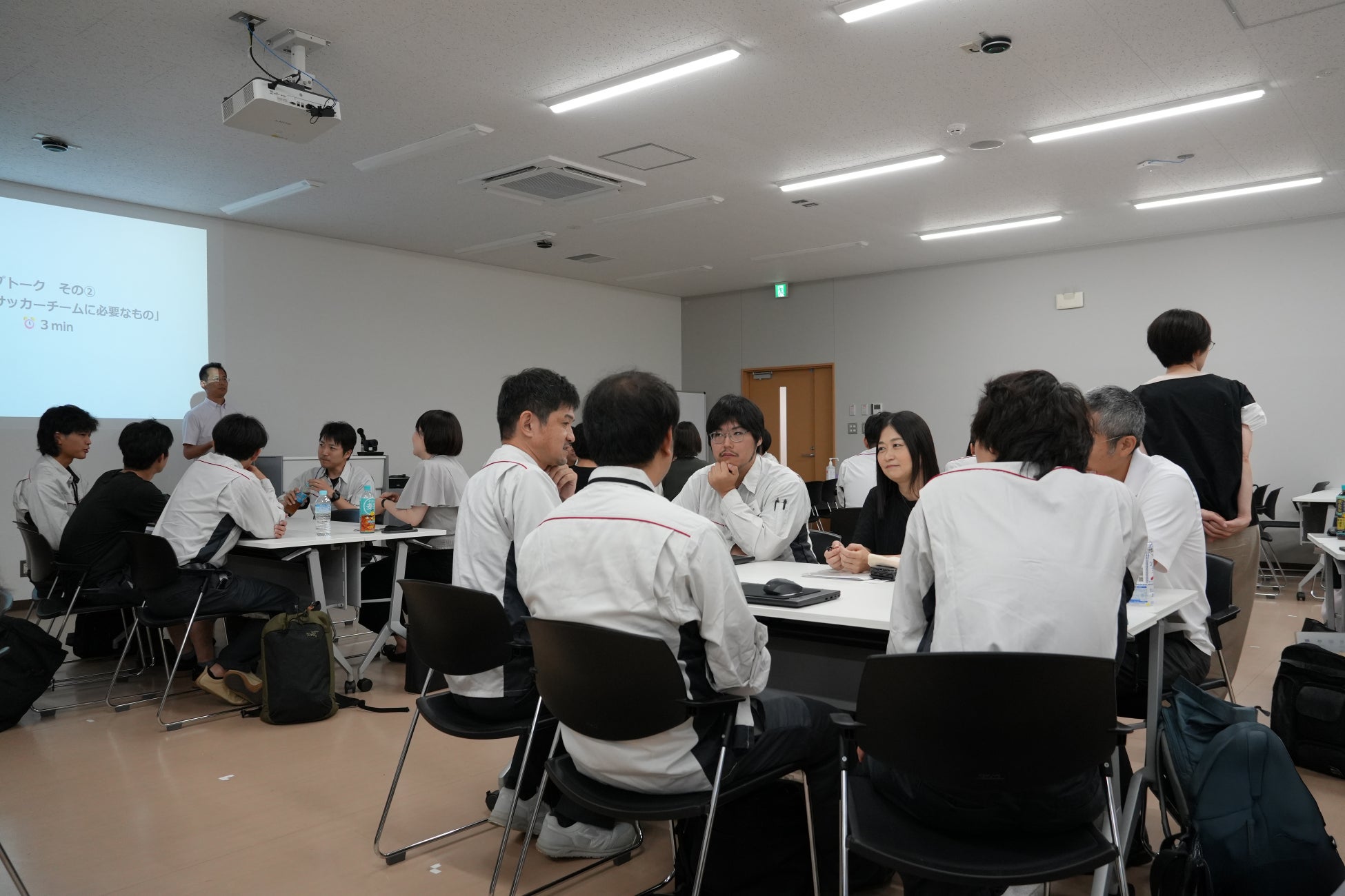 外部講師をお招きし『前川製作所でどう学びどう成長するか』をテーマに講演いただきました。講演ではグループワークが組まれ、キャリア採用者がぶつかる壁をどう乗り越えるかについてお互いの意見を出し合い、ワークを通じて参加者同士の理解を深めあうことができました。
