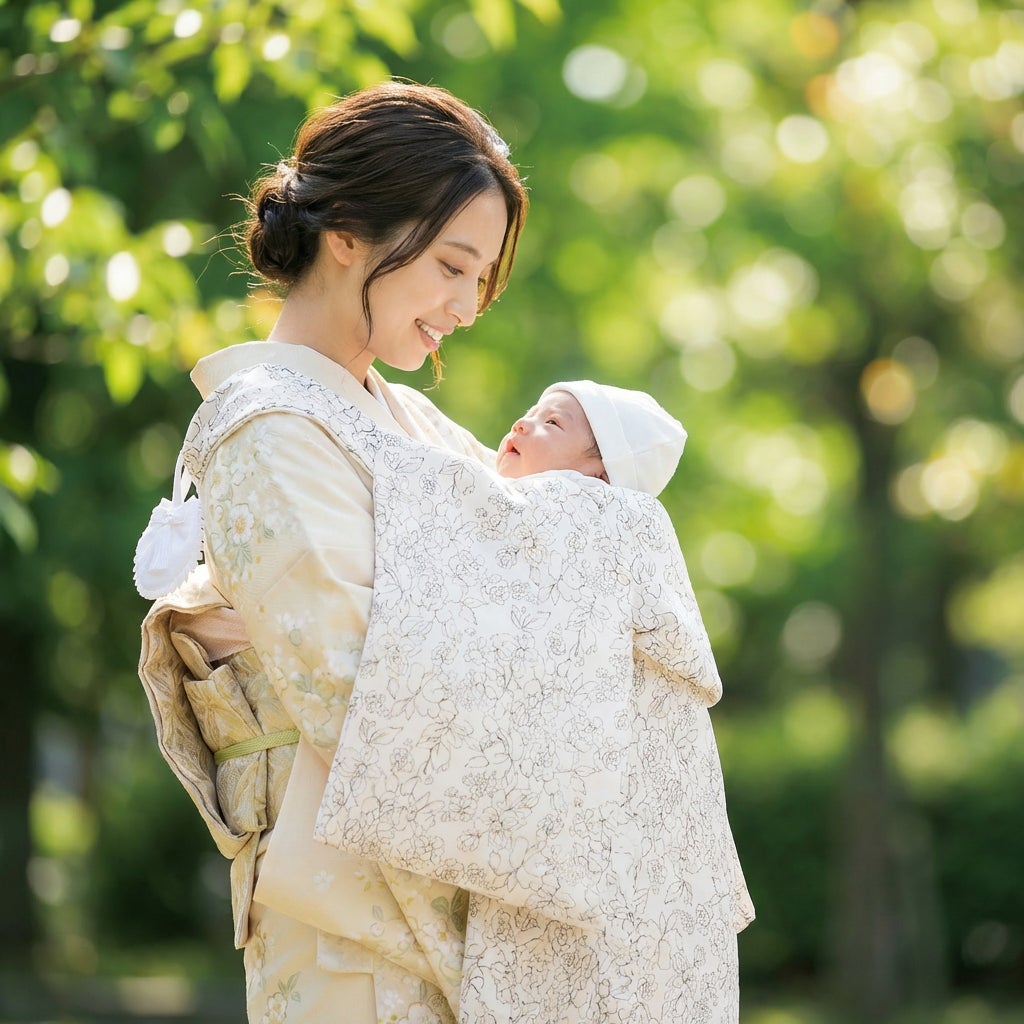 なお、刺繍で仕立てられた草花文様の初着は市場でも流通が少なく、現在はプリントや織り表現が中心となります。その分、軽やかで扱いやすく、現代のご家庭のニーズに合った選択肢として支持を集めています。