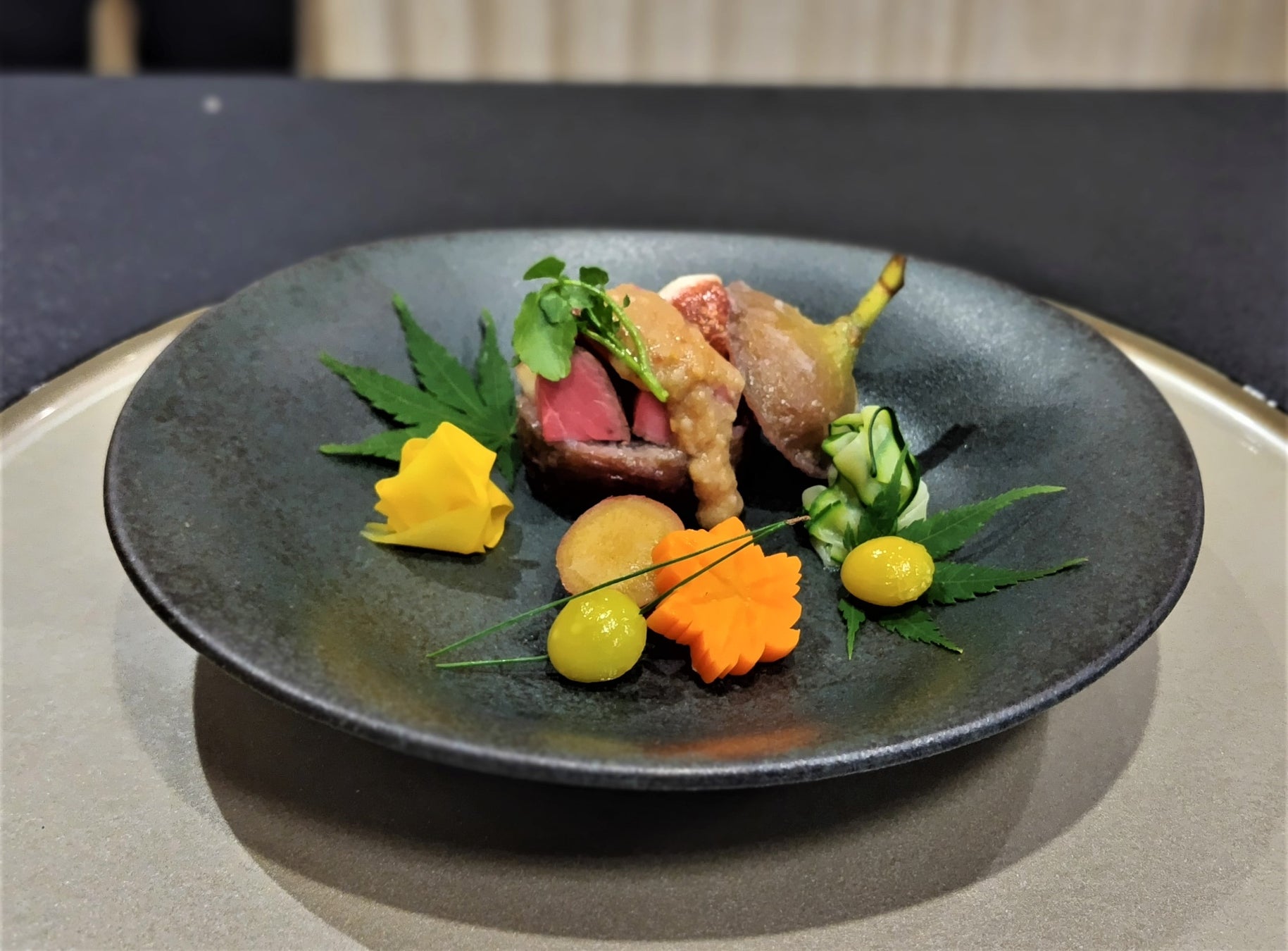 〇横田幹利 氏(グリーンホテル):鹿肉の朴葉味噌漬け無花果味噌
