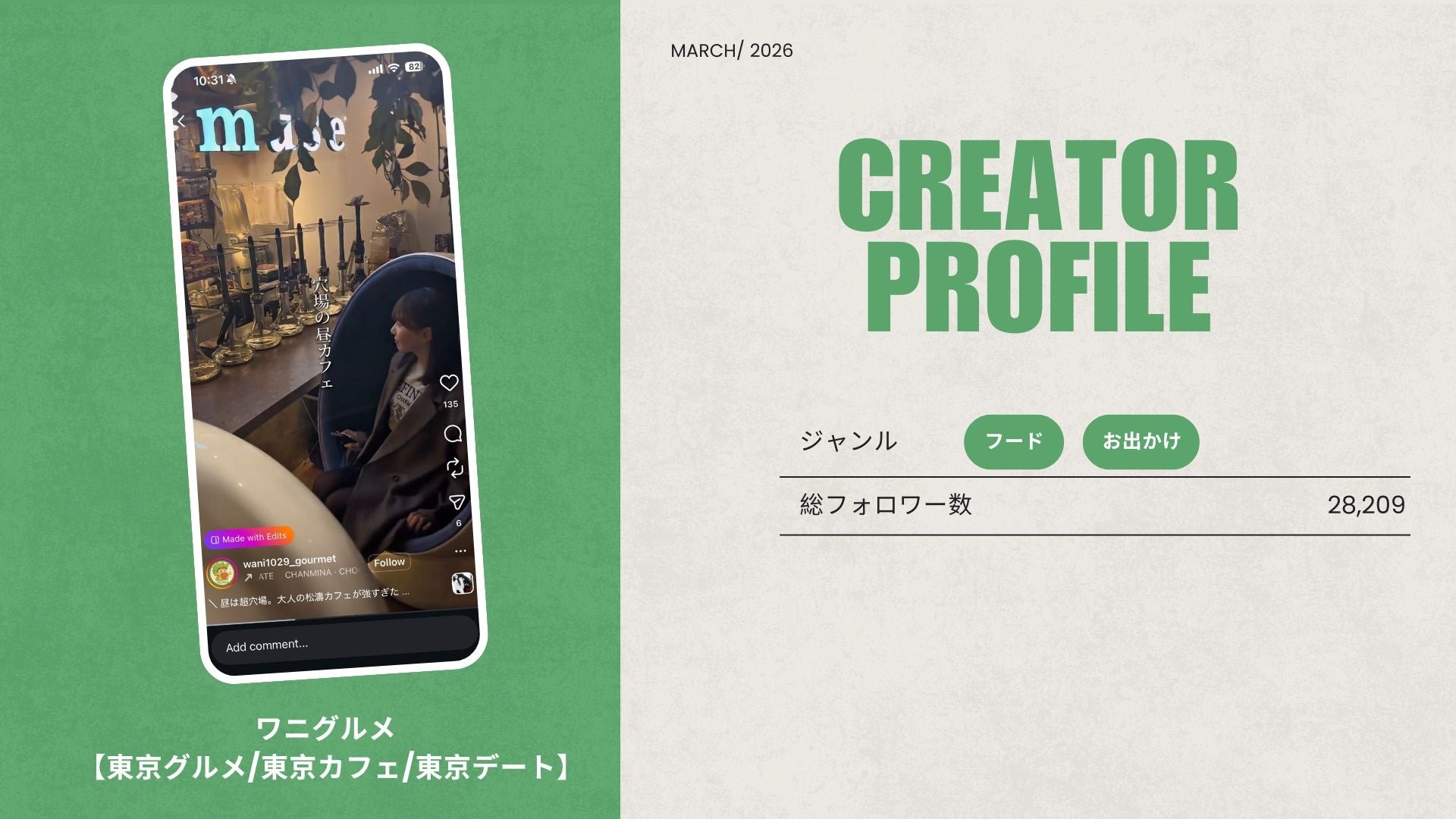 ショート動画取材班に「ワニグルメ【東京グルメ/東京カフェ/東京デート】」が新たに加盟