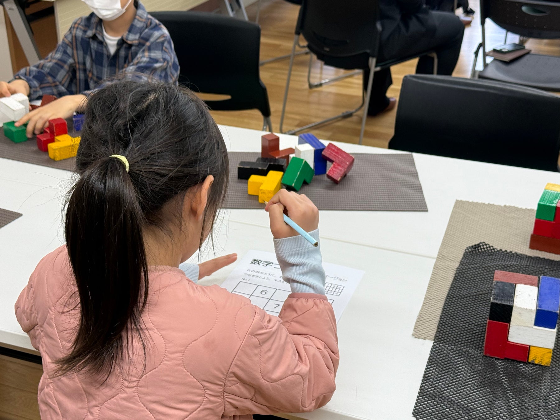 保護者の皆様がセミナーに参加している間、子どもたちは早慶ゼロワン浦和美園校の教育プログラムの一つである「りんご塾」の授業を体験しました。