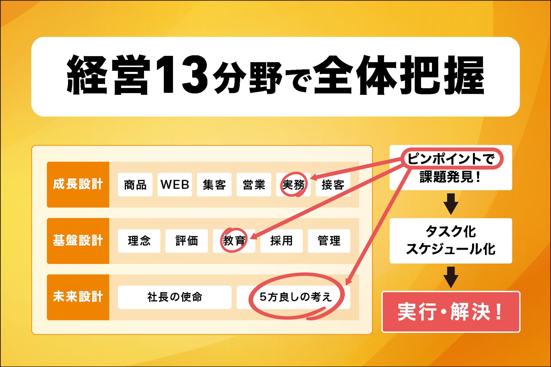 経営を13の分野に分解し、全体構造として整理できる設計資料として制作されました。