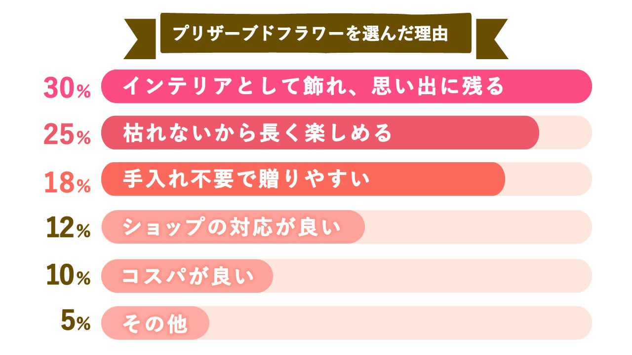 プリザーブドフラワーを購入者からのレビュー3,000件をもとに、なぜプリザーブドフラワーを選んだのか、購入の決め手はなんだったのかを分析しました。