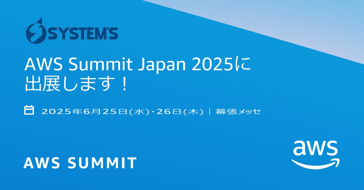 ITリノベーションとマイグレーションを事業展開する株式会社システムズ(所在地:東京都品川区、代表取締役社長:小河原 隆史)は、2025年6月25日(水)・26日(木)の2日間、幕張メッセで開催される日本最大の”AWSを学ぶイベント”「AWS Summit Japan 2025」に出展します。